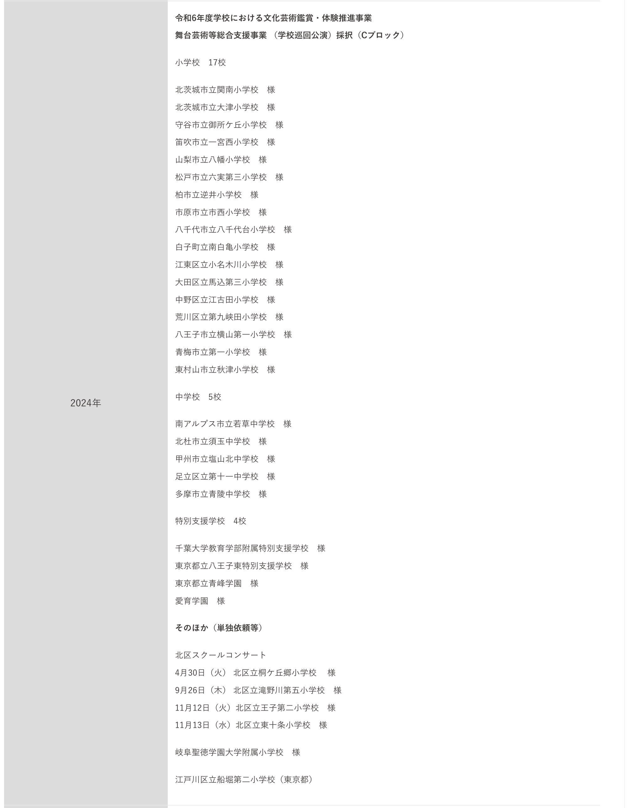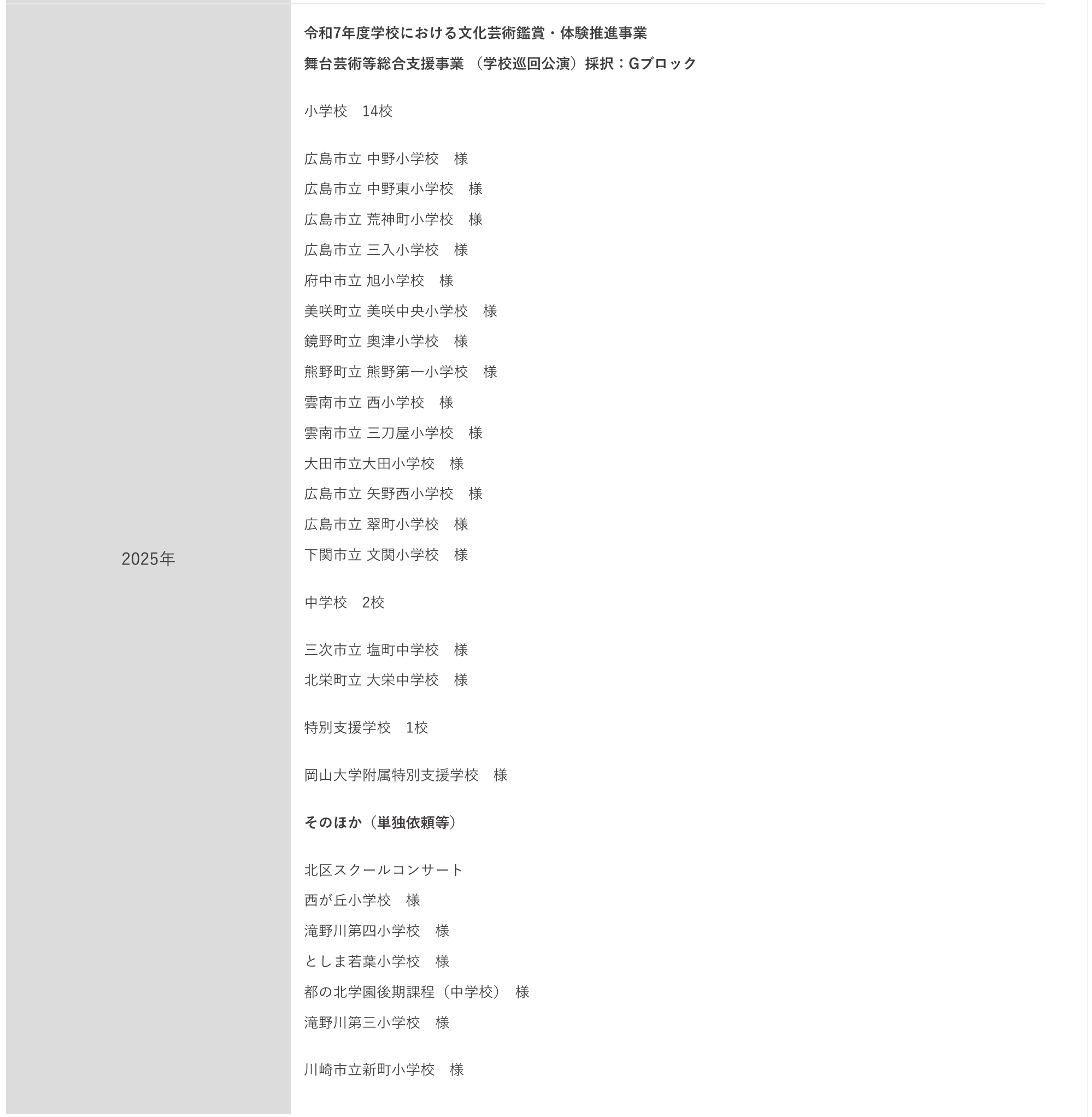 具体的に直近過去2年間の公表できる学校公演実績をまとめると、